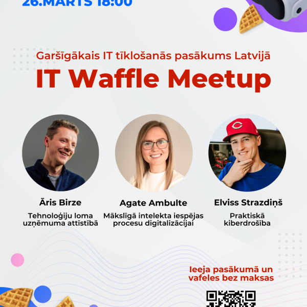 Aicina uz garšīgu tīklošanās pasākumu Kuldīgā “IT Waffle Meetup” Lauma Migoviča21.03.2024 Aktualitātes