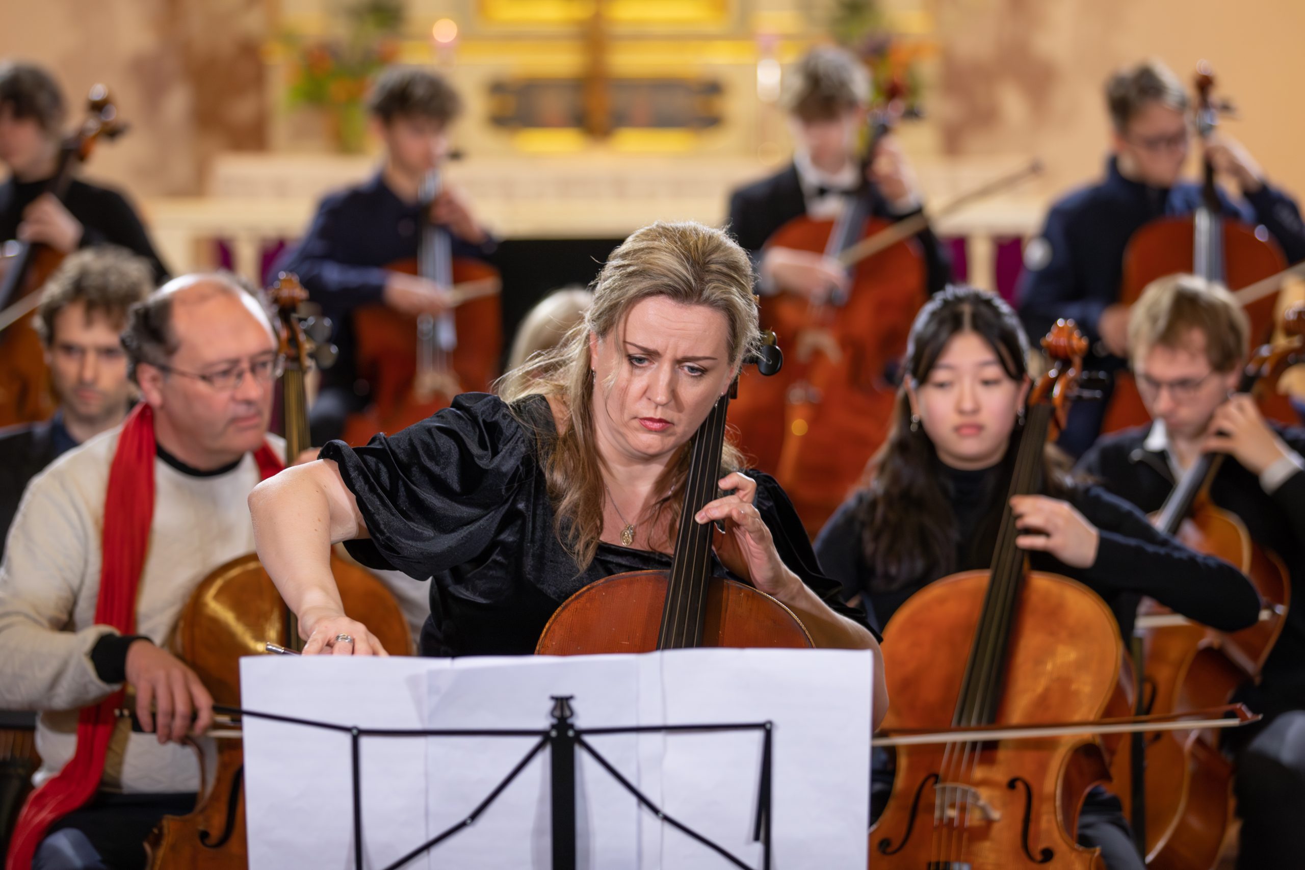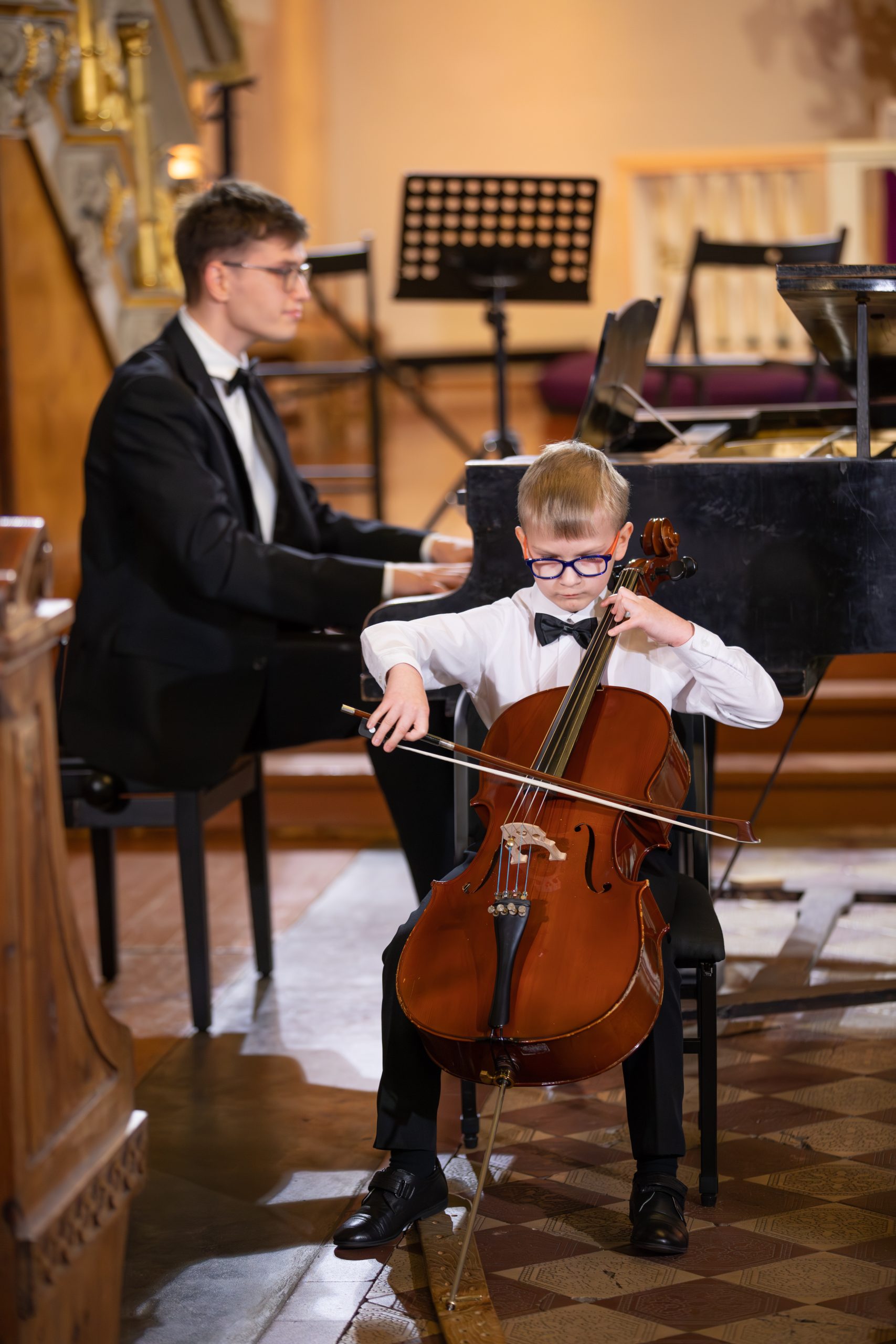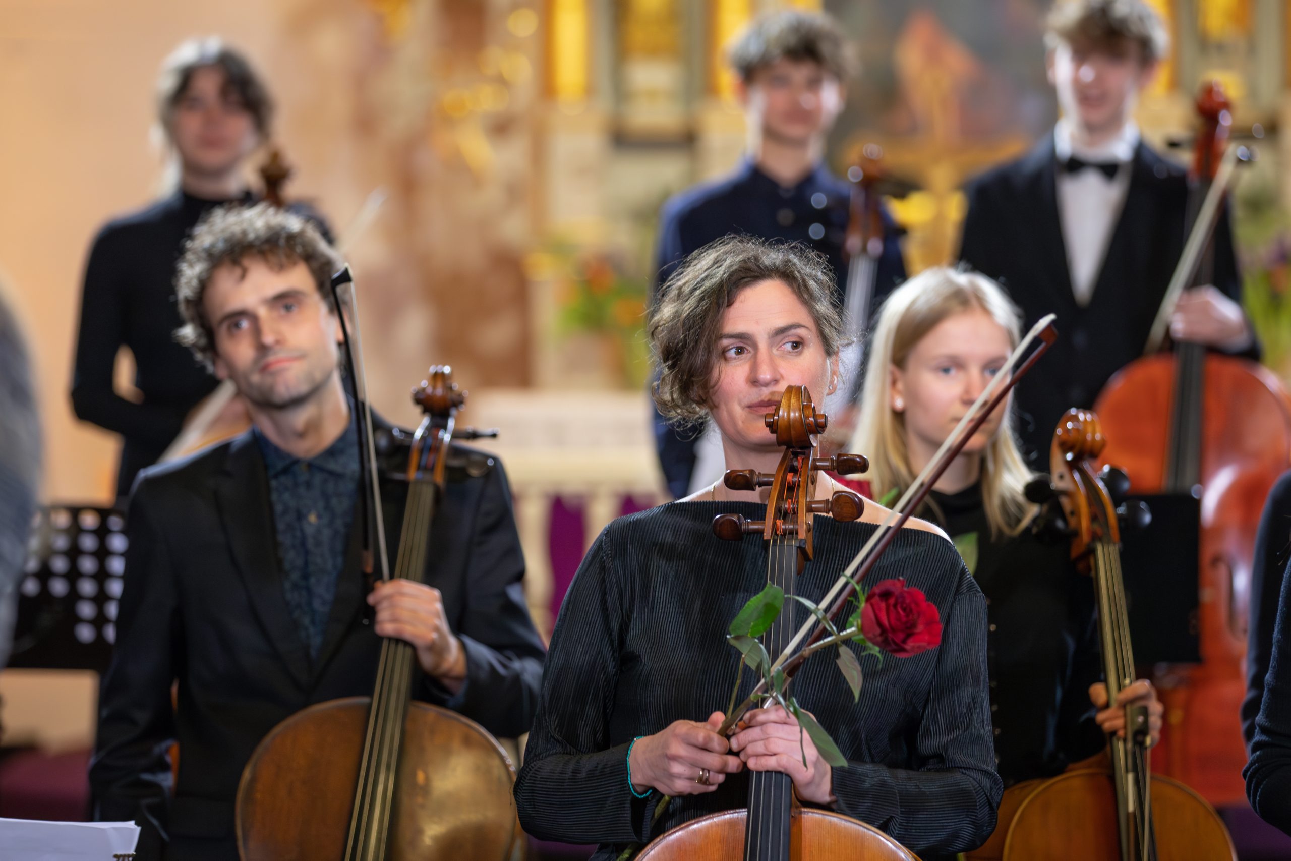 Koncertā piedalījās talantīgi jaunie čellisti no visas pasaules, kas ieradušies Kuldīgā, lai piedalītos 11. Starptautiskajā K. Davidova čellistu konkursā. Kā īpaši viesi uz skatuves kāpa izcili latviešu čellisti Kristīne Blaumane un Kristaps Bergs, kā arī pasaulē atzītais čellists, kamermūziķis, diriģents un Manheimas Mūzikas Augstskolas profesors Fransuā Gutons.