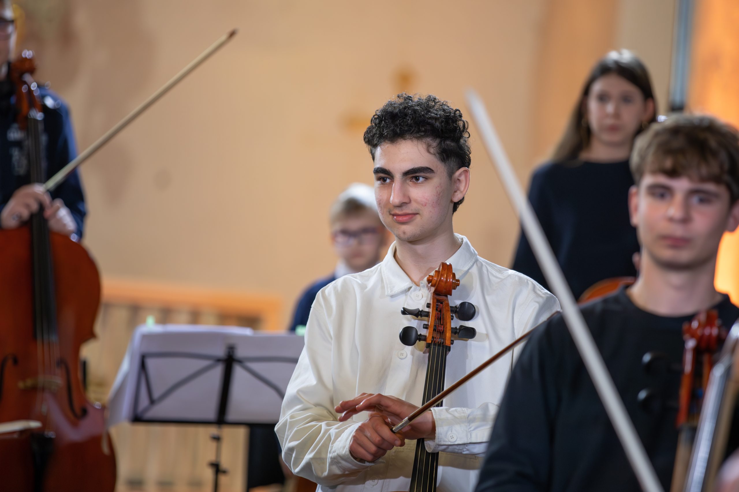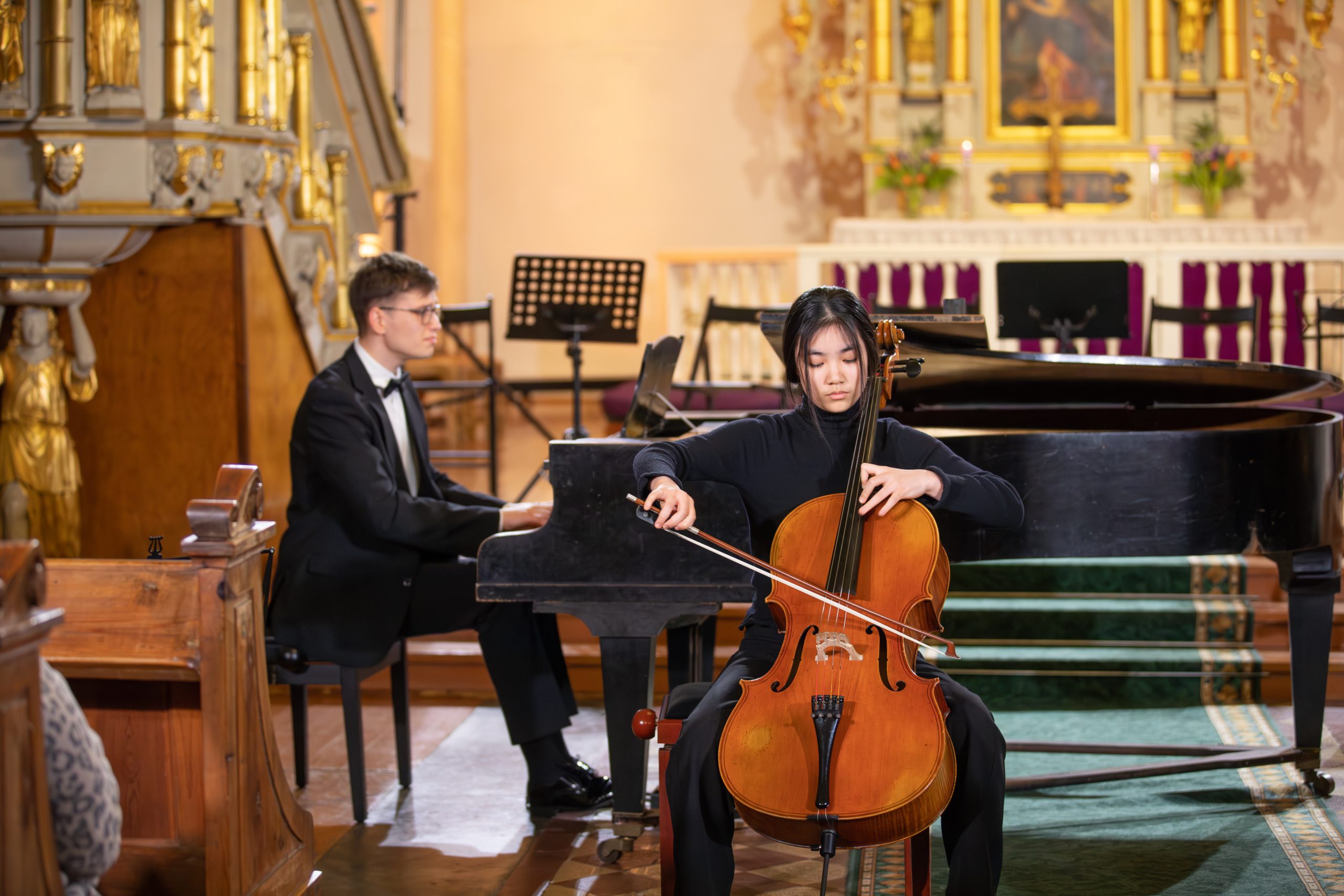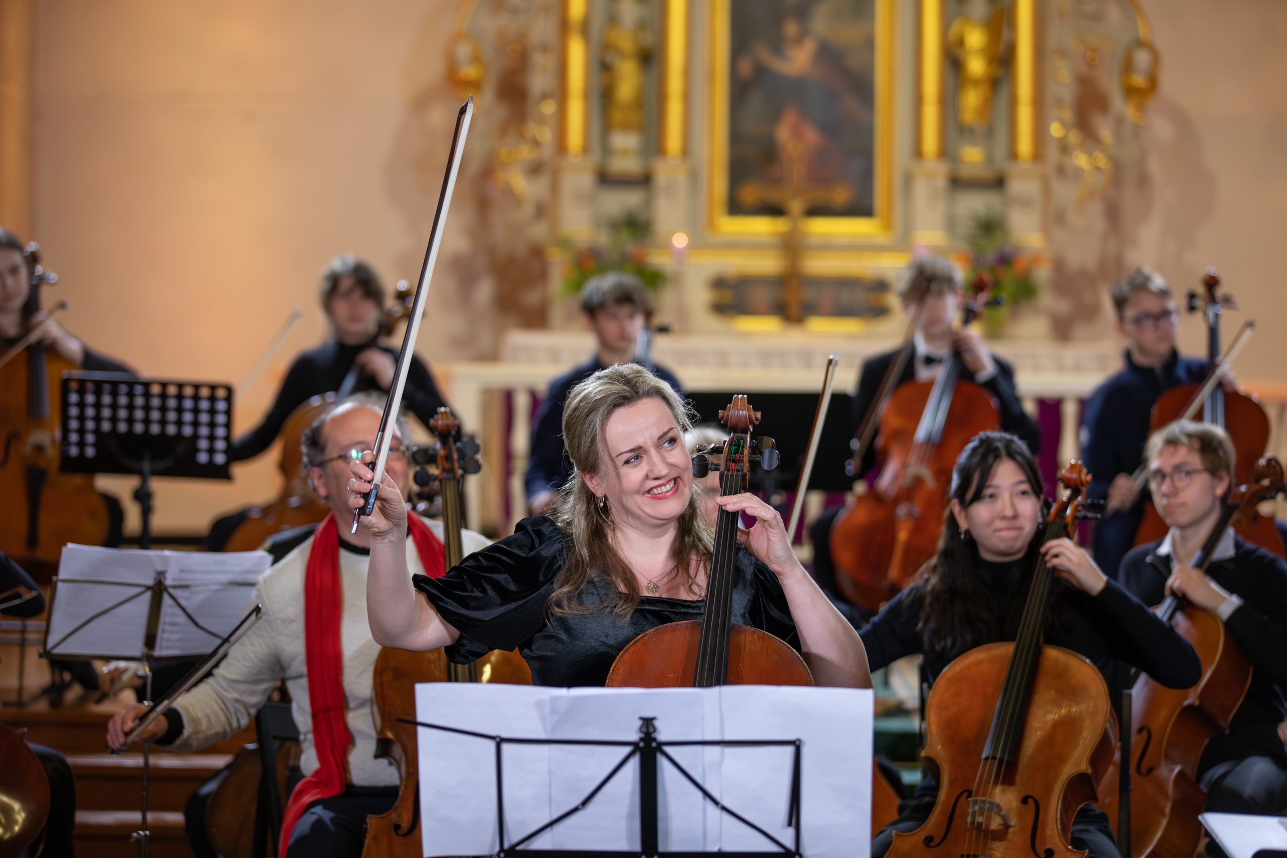 Koncertā piedalījās talantīgi jaunie čellisti no visas pasaules, kas ieradušies Kuldīgā, lai piedalītos 11. Starptautiskajā K. Davidova čellistu konkursā. Kā īpaši viesi uz skatuves kāpa izcili latviešu čellisti Kristīne Blaumane un Kristaps Bergs, kā arī pasaulē atzītais čellists, kamermūziķis, diriģents un Manheimas Mūzikas Augstskolas profesors Fransuā Gutons.