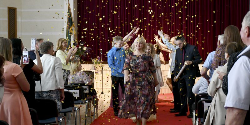 Skrundas vidusskolas direktore Agita Grāvere-Prenclava izlaidumā sveica skolēnus, vecākus un skolotājus. Klases audzinātāja Una Ziņģe pateicās vecākiem par uzticību un sadarbību šo gadu garumā. “Novēlu vienmēr būt blakus un priecāties par bērnu sasniegumiem. Vidusskolas gadi ir kā liela un neaizmirstama pasaka, kura tagad iet uz beigām. Vēlu jums būt laimīgiem un darīt to, kas patiešām patīk,” teica U.Ziņģe.