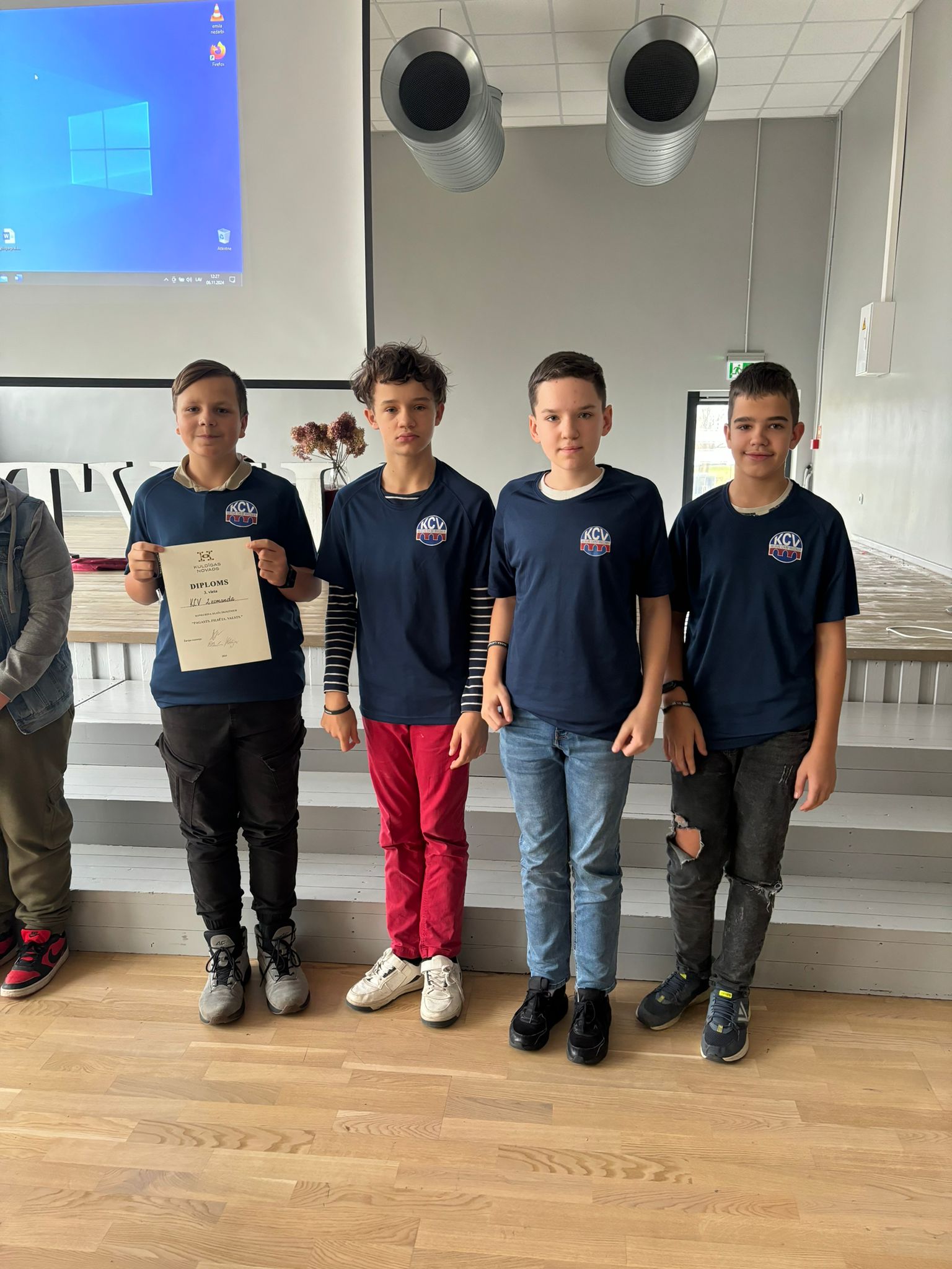 3. vietu – Kuldīgas Centra vidusskolas komanda (Bernards Paičs, Ralfs Voiks, Edgars Grīnvalds, Toms Kulbergs, skolotāja Larisa Flugrāte).