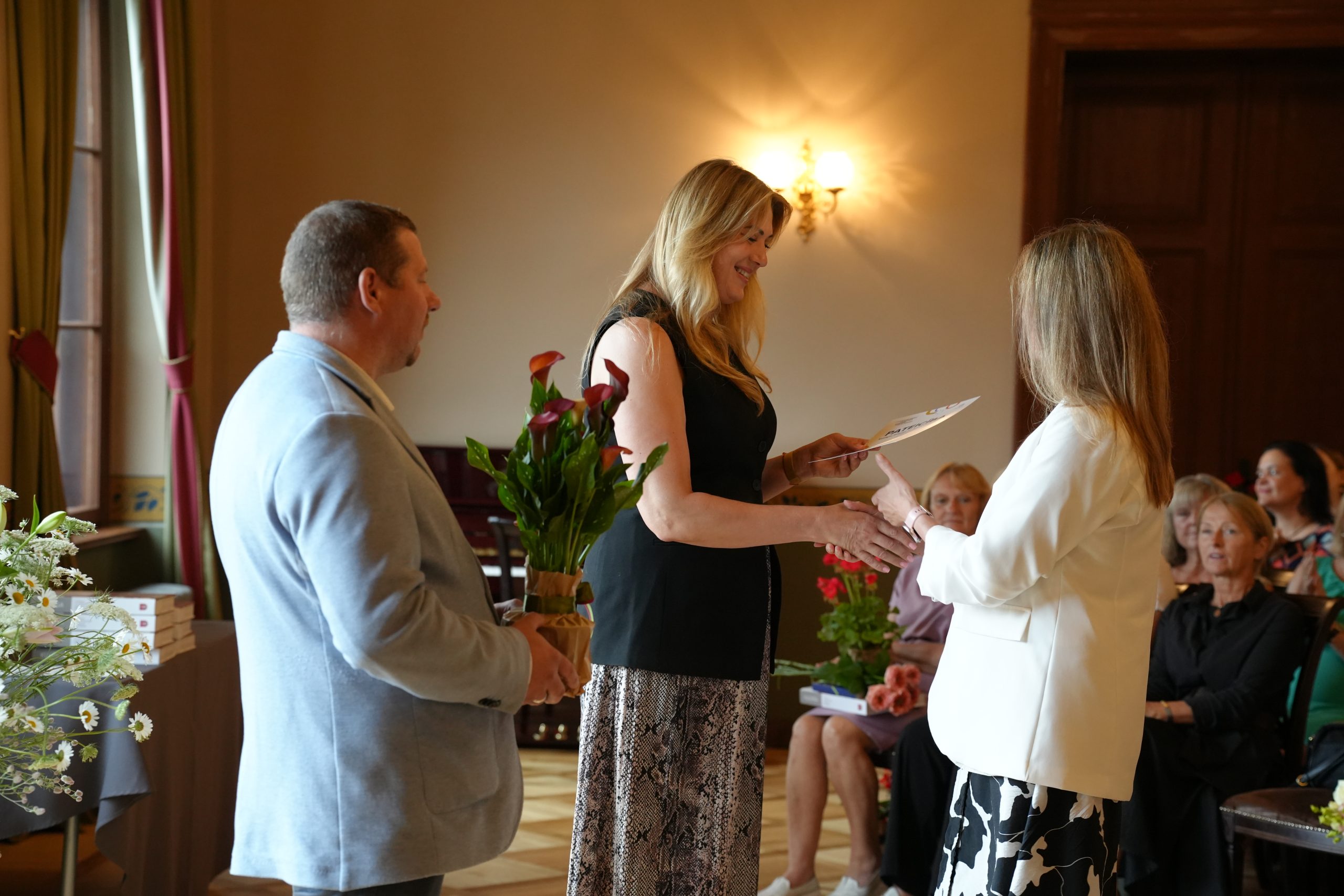 Trešdien, 16. jūlijā, pie Kuldīgas novada domes priekšsēdētājas Ineses Astaševskas notika svinīga pieņemšana, godinot tos, kuri ar savu darbu, talantu un ieguldījumu padarīja XIII Latvijas Skolu jaunatnes dziesmu un deju svētkus neaizmirstamus. Pasākumā piedalījās kolektīvu vadītāji, kormeistari, svētku koordinatori, pagasta pārvalžu un iestāžu vadītāji un citi atbalstītāji, kuri ikdienā strādā ar novada skolēniem un nodrošināja visu nepieciešamo, lai kopīgi piedalītos XIII Latvijas Skolu jaunatnes dziesmu un deju svētkos.