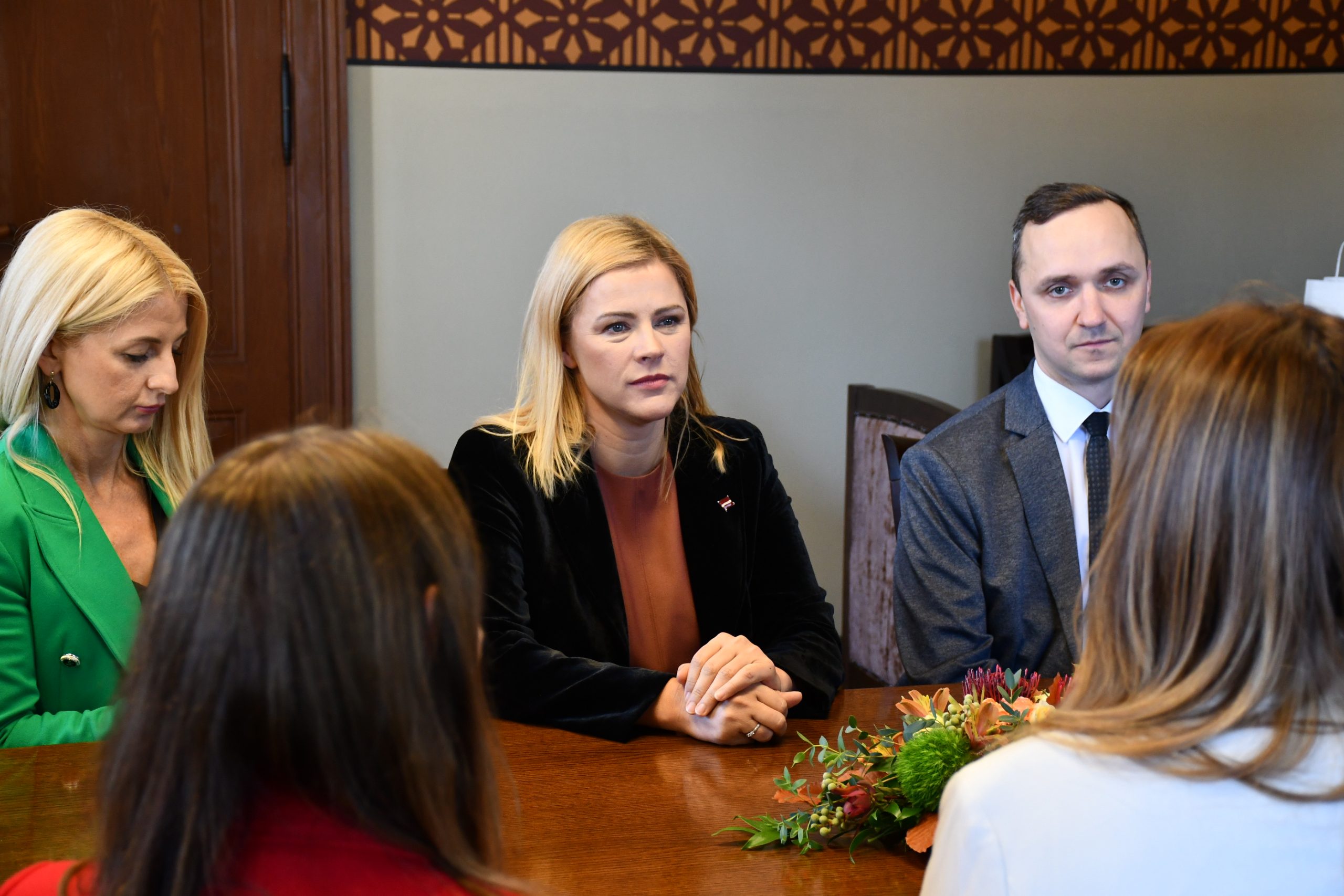 Kuldīgā Ministru prezidenti sagaidīja novada domes priekšsēdētāja Inese Astaševska, vietnieks Artis Roberts, izpilddirektore Ilze Dambīte- Damberga, izpilddirektores vietniece Agnese Buka, kā arī Kuldīgas novada būvvaldes vadītāja Jana Jākobsone un Kuldīgas attīstības aģentūras vadītāja Dace Šēle. Domes vadība iepazīstināja ar Kuldīgas novada attīstības plāniem, uzņēmējdarbības vidi un pašvaldības darbu kultūrvēsturiskā mantojuma aizsardzībā. Pārrunāti jautājumi, kas saistīti ar Kuldīgas vecpilsētas iekļaušanu UNESCO Pasaules mantojuma sarakstā.