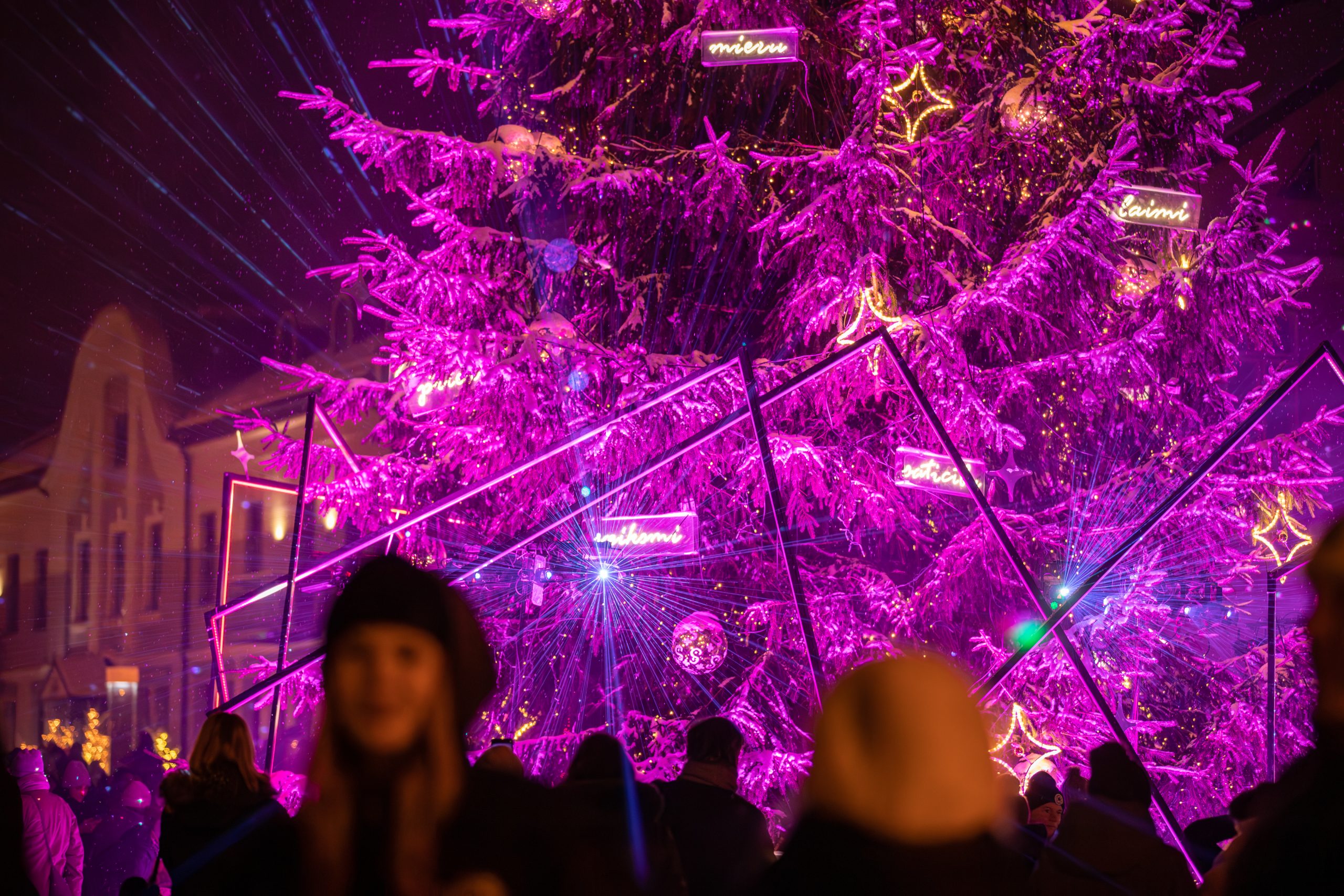 2.decembra pievakarē Rātslaukumā pilnā krāšņumā iemirdzējās Kuldīgas galvenā svētku egle. Košajai skaistulei iedegties neskaitāmu lampiņu gaismā palīdzēja pats Ziemassvētku vecītis un viņa jautrie rūķīši, kuri ziemas festivālā “Notici brīnumam” ar dziesmām un dejām pamanījās uzburt pasakainu atmosfēru.
