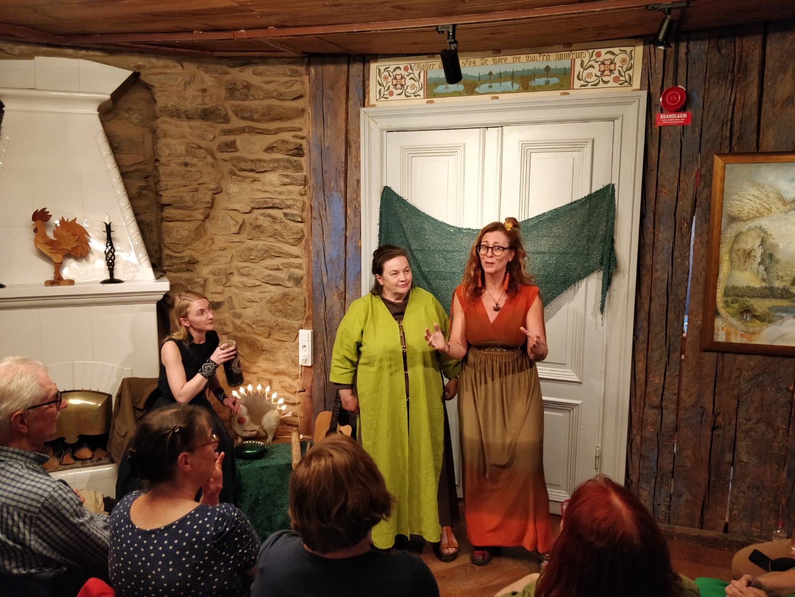 Paralēli festivāla notikumiem organizācijas vadītāja Tīne Vintere iepazīstināja ar Stāstniecības muzeju, kas bija festivāla epicentrā, kā arī ar Jungbī pilsētas nemateriālā kultūras mantojuma izpausmēm pilsētvidē – bērnu rotaļlaukumu, kas izveidots pēc mītiska pasaku tēla motīviem, un sienu gleznojumiem pilsētā, kas vēsta par stāstniecības tradīcijām. Devāmies izbraukumā ārpus pilsētas, apmeklējot stāstu maršrutu, kas izvietots trīs pašvaldību robežās un ar atraktīvām “pieturzīmēm” – īpašiem stāstu skapīšiem – vēsta par vietējām teikām un leģendām.