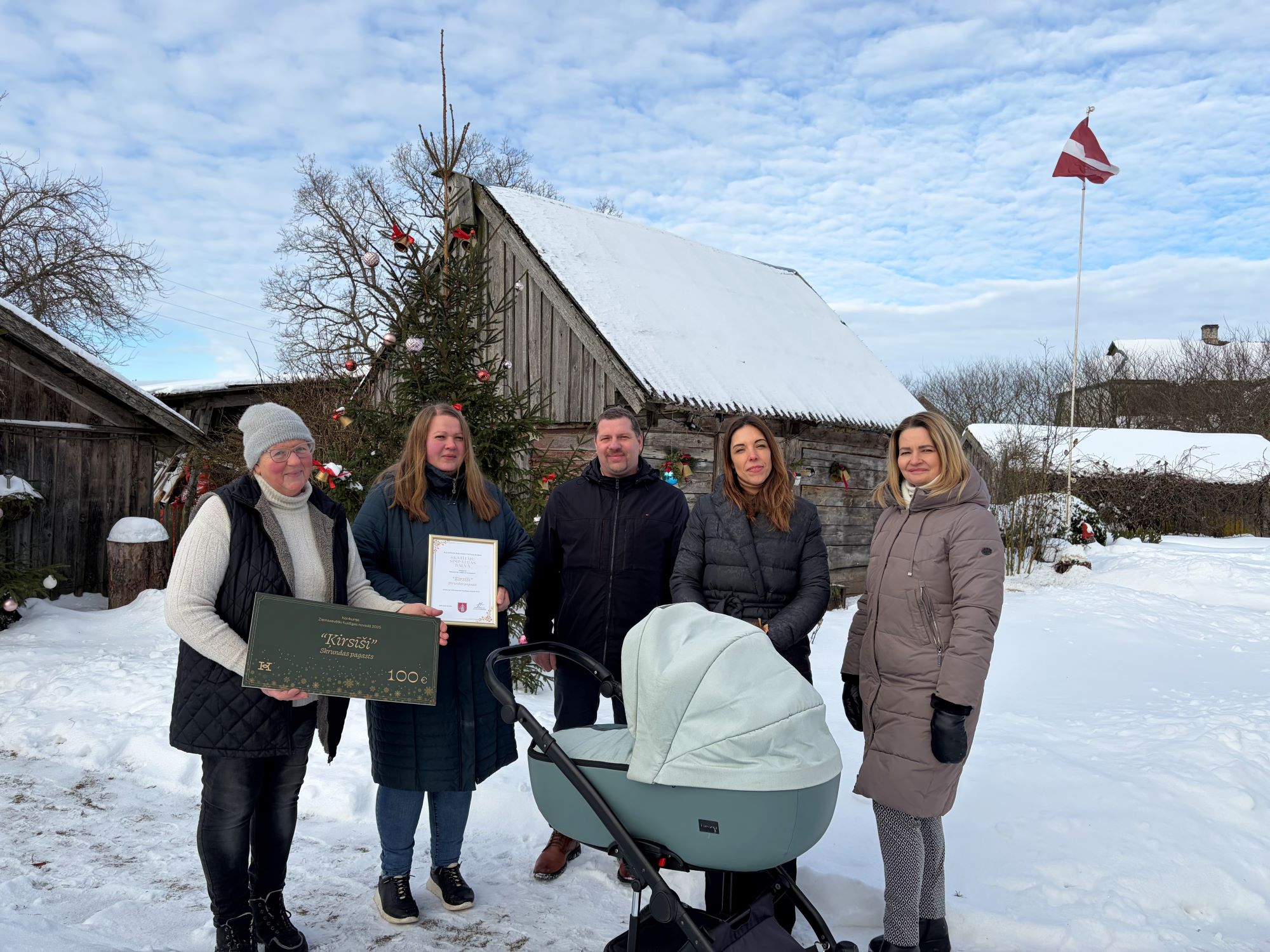 Noslēdzies konkurss “Ziemassvētki Kuldīgas novadā 2025”, kurā iedzīvotāji, uzņēmēji un iestādes tika aicināti iesaistīties svētku noskaņas radīšanā, izrotājot savus īpašumus un piesakot tos konkursam. Kuldīgas novada domes priekšsēdētājas vietnieks Artis Roberts un izpilddirektora vietniece Agnese Buka labāko noformējumu autorus godināja personīgi, sveicot ar Atzinības rakstu un naudas balvu un pateicās par radošumu un ieguldījumu novada rotāšanā.